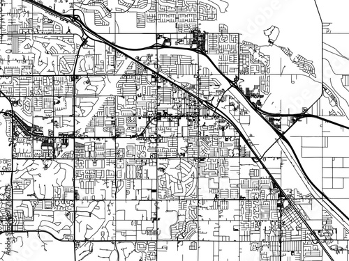 Naklejka premium Vector road map of the city of Indio California in the United States of America with black roads on a white background.