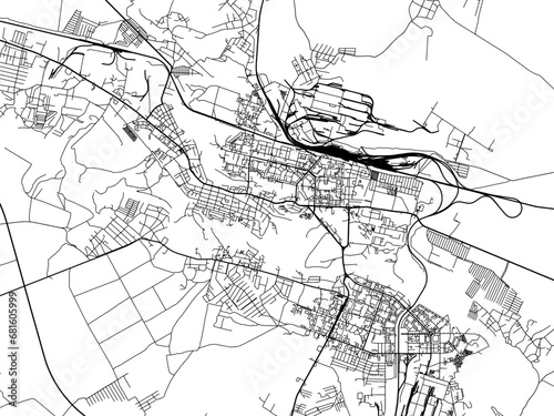 Naklejka premium Vector road map of the city of Kamensk-Uralskiy in the Russian Federation with black roads on a white background.