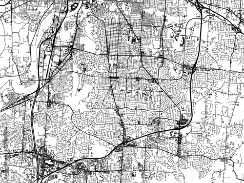 Naklejka premium Vector road map of the city of Kettering Ohio in the United States of America with black roads on a white background.