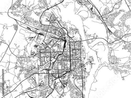 Fototapeta premium Vector road map of the city of Kirov in the Russian Federation with black roads on a white background.