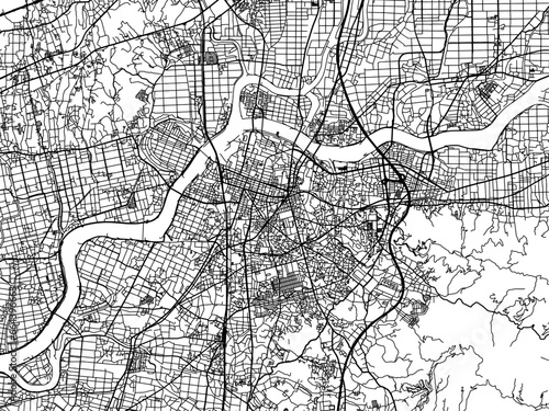 Naklejka premium Vector road map of the city of Kurume in Japan with black roads on a white background. 4:3 aspect ratio.