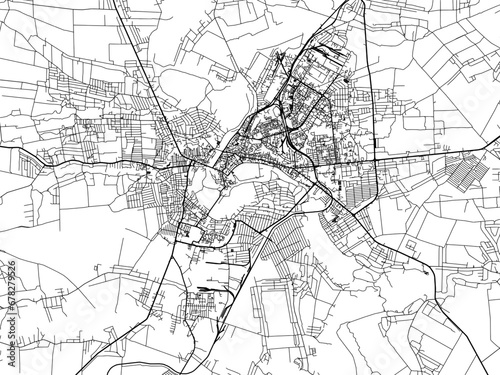 Fototapeta premium Vector road map of the city of Lutsk in Ukraine with black roads on a white background.