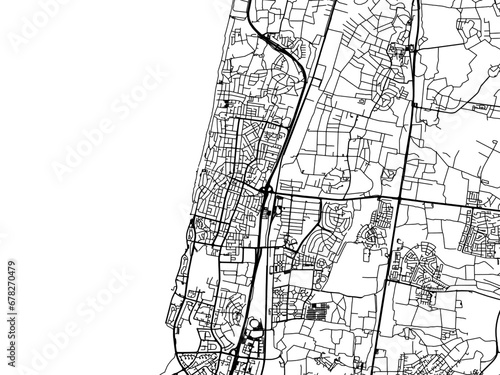 Naklejka premium Vector road map of the city of Netanya in Israel with black roads on a white...