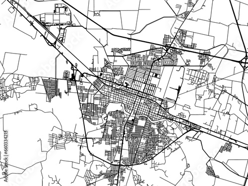 Naklejka premium Vector road map of the city of Salamanca in Mexico with black roads on a white background.