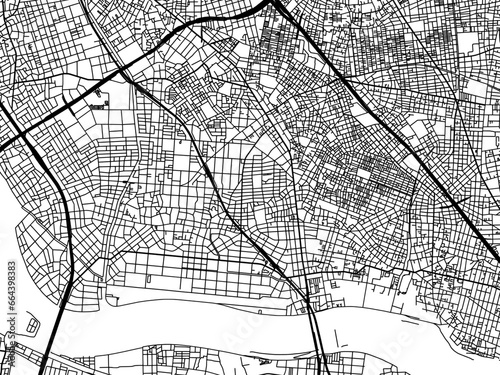 Naklejka premium Vector road map of the city of Shimotoda in Japan with black roads on a white background. 4:3 aspect ratio.