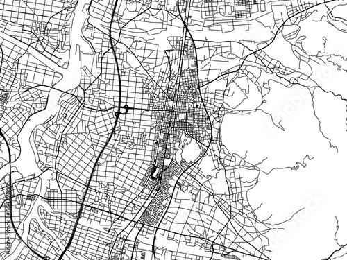 Naklejka premium Vector road map of the city of Tendo in Japan with black roads on a white background. 4:3 aspect ratio.