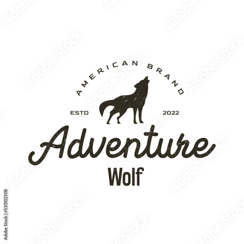 Naklejka premium Vector roaring wolf logo design, retro style, badge, design elements,...