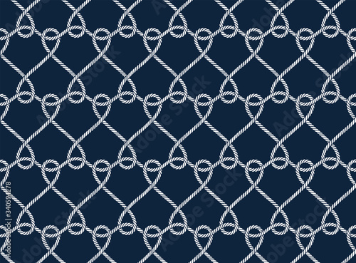 © Jan, Naklejka premium Vector ropes, fishing net, seamless. Blue background.