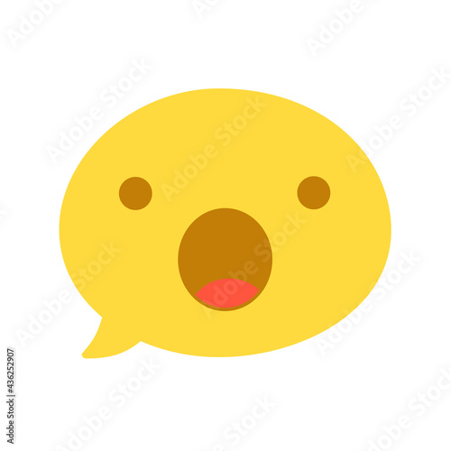 © Daria, Fototapeta premium Vector round isolated emoticon emoji on white. The symbol of surprise, shock, delight. Open eyes and mouth with tongue. Popular chat element. Fashionable, flat. Dialogue bubble, cute dialog box.