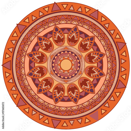 © zelenkova, Naklejka premium vector round mandala design element coffee colored