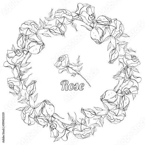 Fototapeta premium Vector round wreath of roses. Greeting card background for Valentine's day, birthday, mother's day, wedding. Vector