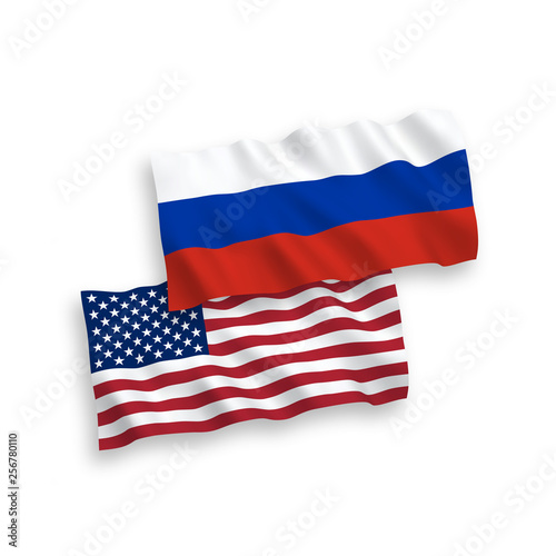 © epic, Naklejka premium Vector Russian and American waving flags isolated on white background. 1 to 2 proportion.