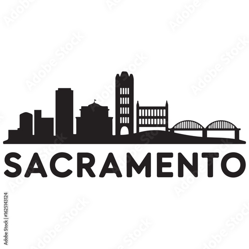 © Nargis, Fototapeta premium Vector Sacramento skyline. Travel Sacramento famous landmarks. Business and tourism concept for presentation, banner, web site. Vector black silhouette. with white background