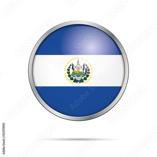 Obraz premium Vector Salvadorian flag Button. El Salvador flag in glass button style with metal frame