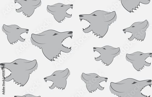 © newrossosh, Fototapeta premium Vector seamless background of heads of wolves. Randomly scattered wolves