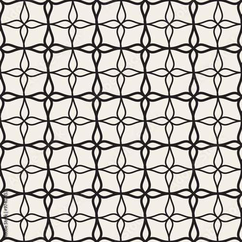 © Samolevsky, Naklejka premium Vector Seamless Black and White Floral Petal Shape Wavy Lines Grid Lattice Pattern