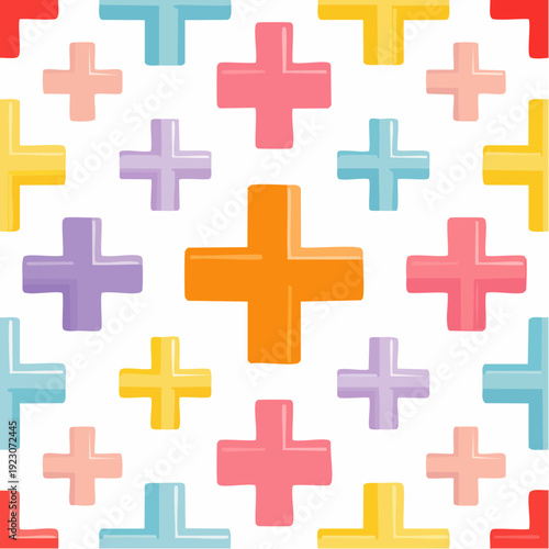 © Rendy Dastian, Obraz premium vector seamless cross or plus pattern with changeable background color for the crosses