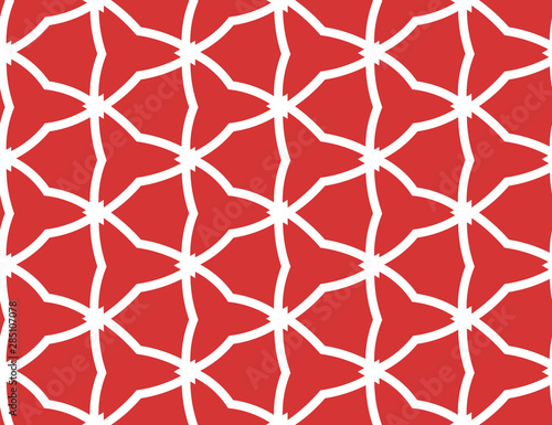 © Emrah_Avci, Fototapeta premium Vector seamless geometric pattern. Shaped white barbed wires and triangles, red background.