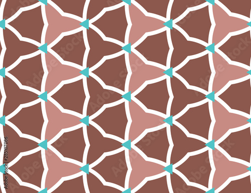 © Emrah_Avci, Fototapeta premium Vector seamless geometric pattern. Shaped white barbed wires, turquoise triangles in brown background.