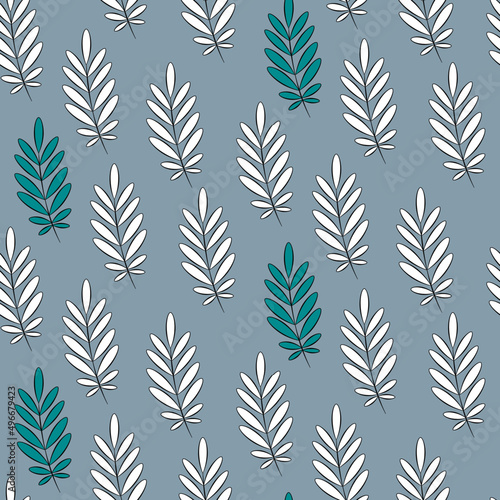 Naklejka premium Vector seamless half-drop pattern, with leaves