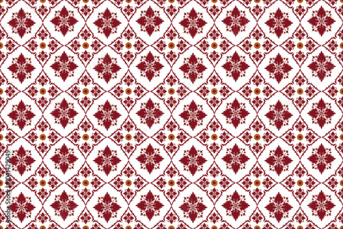 © Turanjit, Fototapeta premium Vector seamless ikat pattern with red flowers