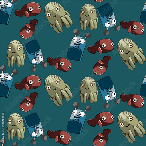 Fototapeta premium Vector seamless illustration cute and fantastic monster pattern