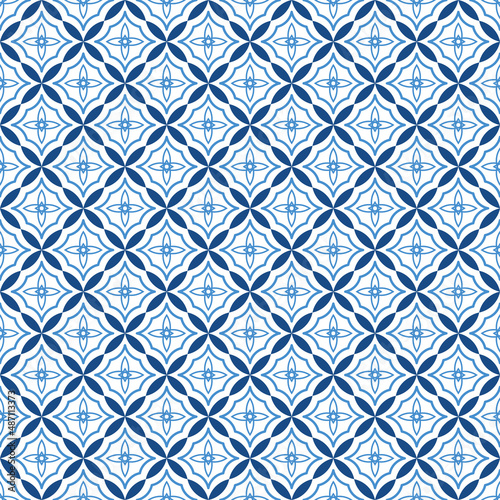 © ExpressVectors, Fototapeta premium Vector seamless ornamental geometric pattern - blue and white tile texture. Creative tileable endless background