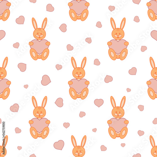 © Irina Fedurtso, Obraz premium Vector seamless pattern. A romantic hare with a heart in his hands