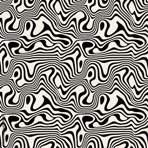 © Curly_Pat, Obraz premium Vector seamless pattern. Abstract grunge texture with monochrome fluid stains. Creative background with blots. Decorative design with marble effect. Can be used as swatch for illustrator