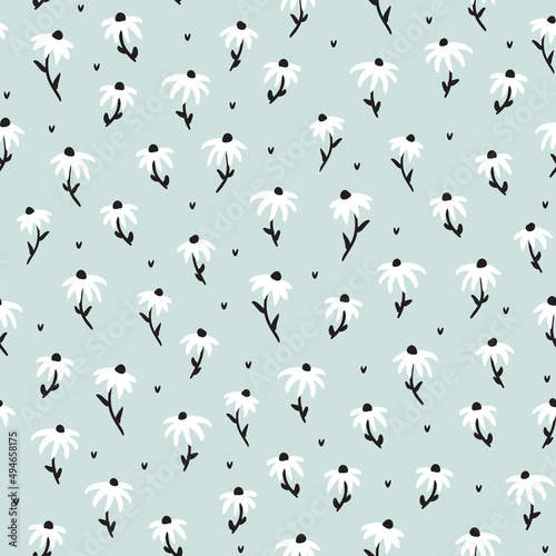 © Renatta_Zare, Fototapeta premium Vector seamless pattern background with bold hand drawn echinacea flowers.
