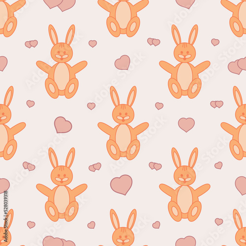 Obraz premium Vector seamless pattern. Child. A hare with hearts