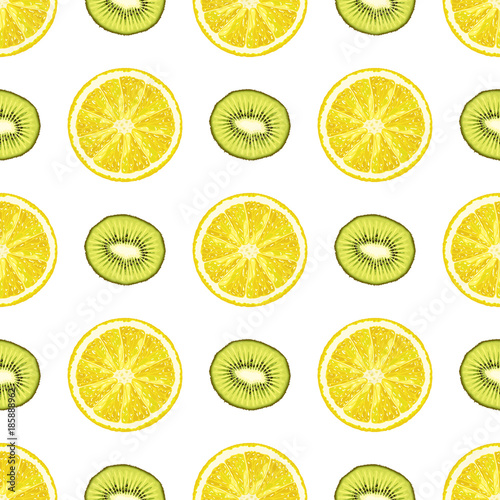 Fototapeta premium Vector seamless pattern from lemon and kiwi slices. Citrus background
