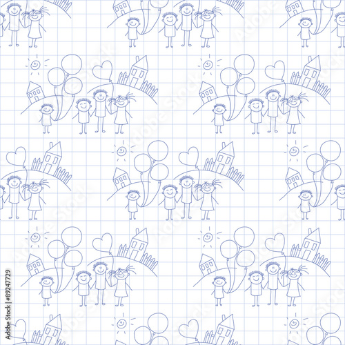 © helen_f, Obraz premium Vector seamless pattern. Kids, school and education