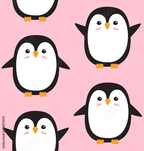 © Sweta, Naklejka premium Vector seamless pattern of flat cartoon hand drawn penguin isolated on pink background