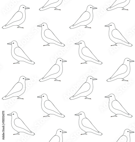 © Sweta, Fototapeta premium Vector seamless pattern of flat hand drawn outline crow isolated on white background