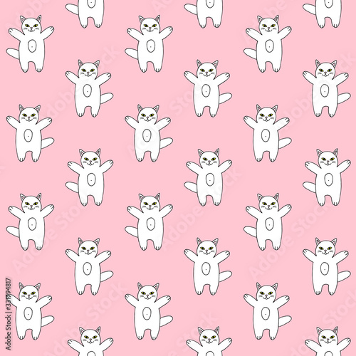 © Sweta, Obraz premium Vector seamless pattern of white hand drawn doodle sketch cat isolated on pastel pink background