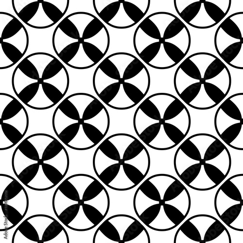 © Olgastocker, Fototapeta premium Vector seamless pattern, repeat monochrome abstract geometric texture. Illustration with black & white bobbins, simple endless background. Design element for prints, textile, digital, cover, package