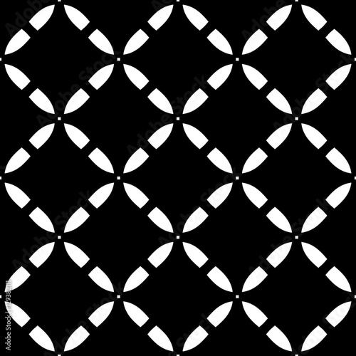 © Olgastocker, Fototapeta premium Vector seamless pattern. Simple black & white monochrome texture, illustration of diagonal lattice, smooth geometric figures. Abstract dark repeat background. Design for prints, digital, textile, web