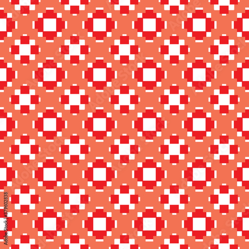 Fototapeta premium Vector seamless pattern texture background with geometric shapes, colored in red, orange, white colors.