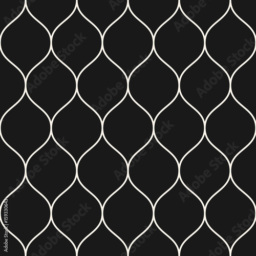 © Olgastocker, Fototapeta premium Vector seamless pattern, thin vertical wavy lines. Texture of mesh, fishnet, lace, weaving, smooth grid. Subtle dark monochrome geometric background. Design for prints, decor, fabric, covers, textile