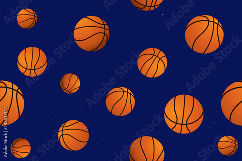 © Manovector, Obraz premium Vector seamless pattern with basketball on blue background.