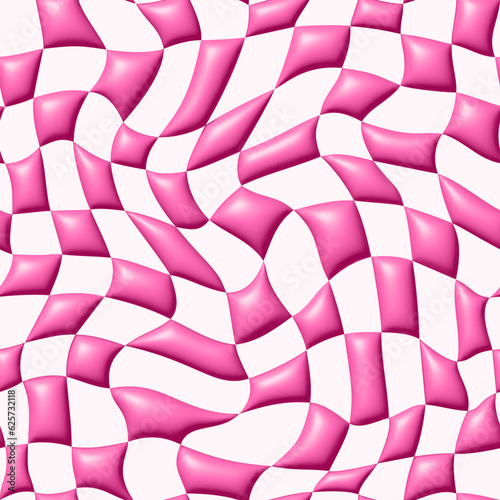 © Briddy, Obraz premium Vector Seamless Pattern with Distorted 3D Plastic Checker Texture. Pink Checkered Pattern in Trendy Pinkcore Style