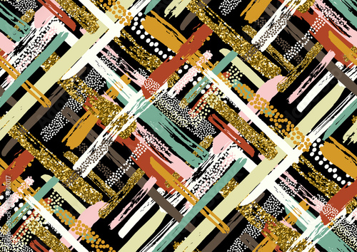 © Olga_Rom, Obraz premium Vector seamless pattern with hand drawn gold glitter textured brush strokes