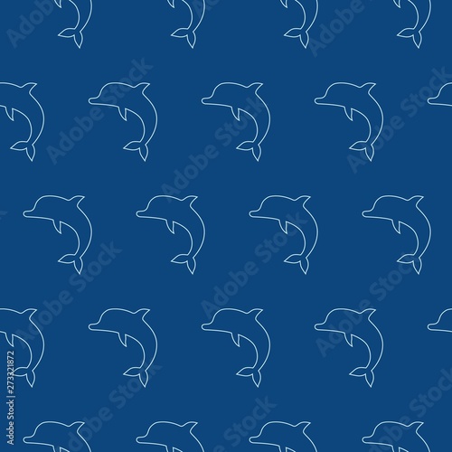 © YuliaR, Naklejka premium Vector seamless pattern with jumping dolphins blue background