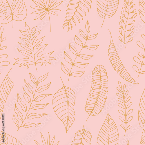 Fototapeta premium Vector seamless pattern with monstera and palm leaves
