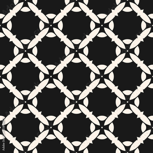 © Olgastocker, Naklejka premium Vector seamless pattern with mosaic tiles. Monochrome geometric floral ornament, abstract background texture with carved shapes, grid, lattice. Black and white repeat design for decor, textile, fabric