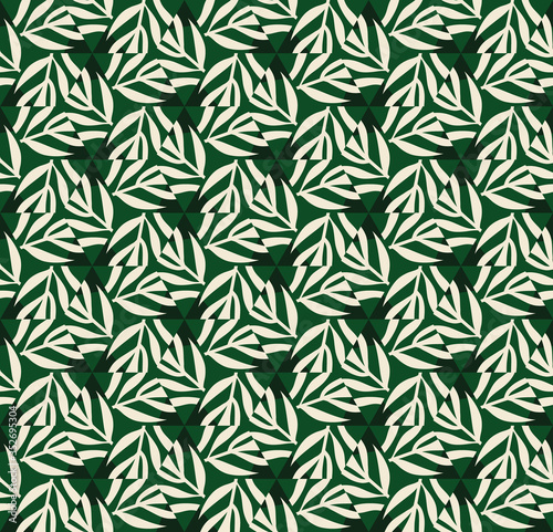 © Pyzhova, Naklejka premium Vector seamless pattern with stylized tropical leaves and flowers