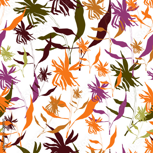 © dinadankersdesign, Fototapeta premium Vector seamless pattern with sunflower shapes. Simple modern floral background.