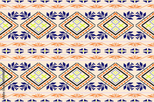 Fototapeta premium Vector seamless pixel art.Pixel mosaic texture with simple square particles.Ethnic geometric stitch pattern use for cloth,textile,wallpaper,cushion,carpet,quilt