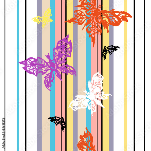 © alchena, Obraz premium Vector seamless striped background with butterflies